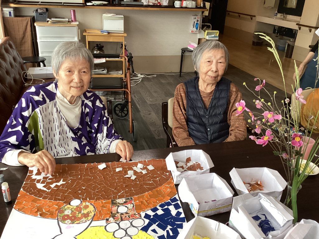 つつじユニットの皆様と「季節の季節の千切り絵」の製作を進めています😯