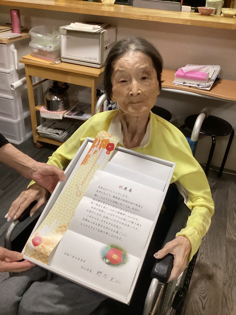 また、今月はご入居されている方が、米寿のお祝いを松山市から受けられました🎉