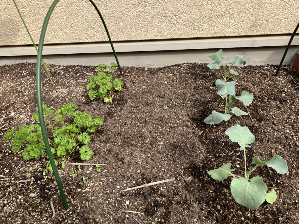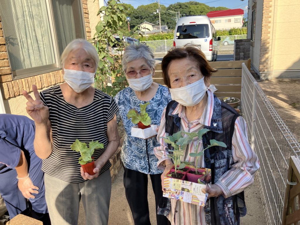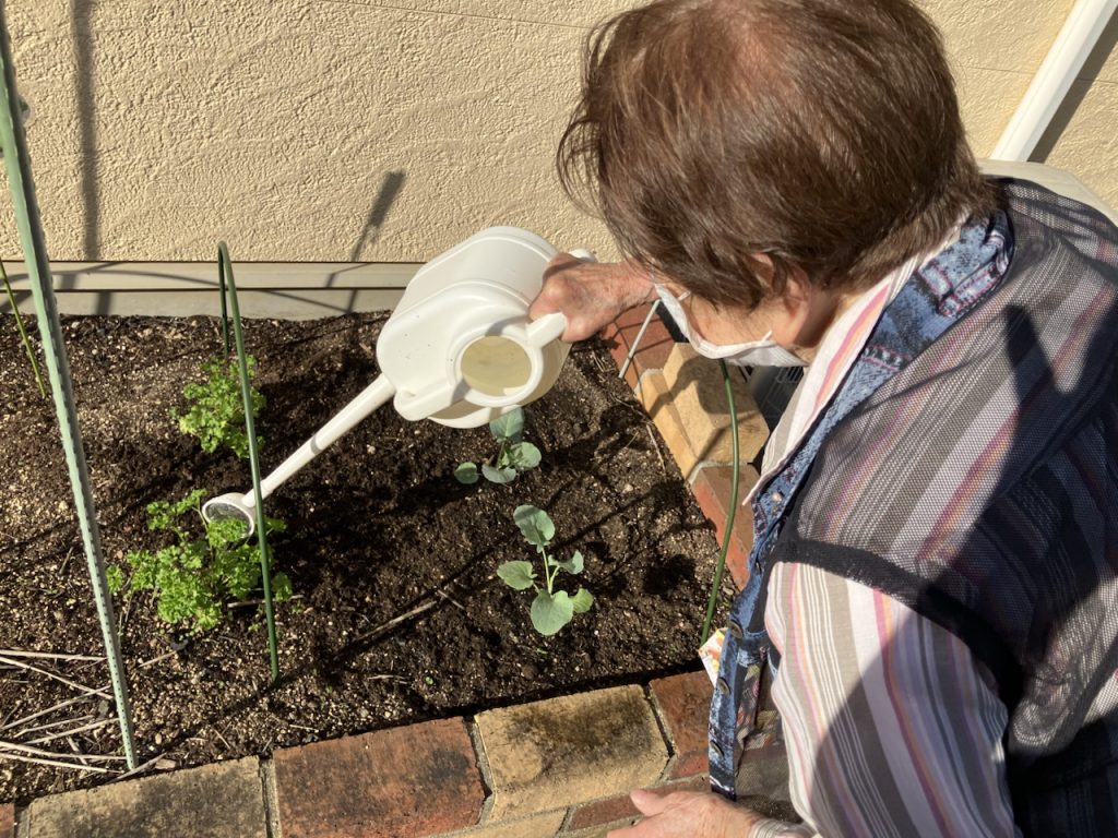 利用者さんと一緒に、パセリや茎ブロッコリー、サラダレタスを植えました🥬