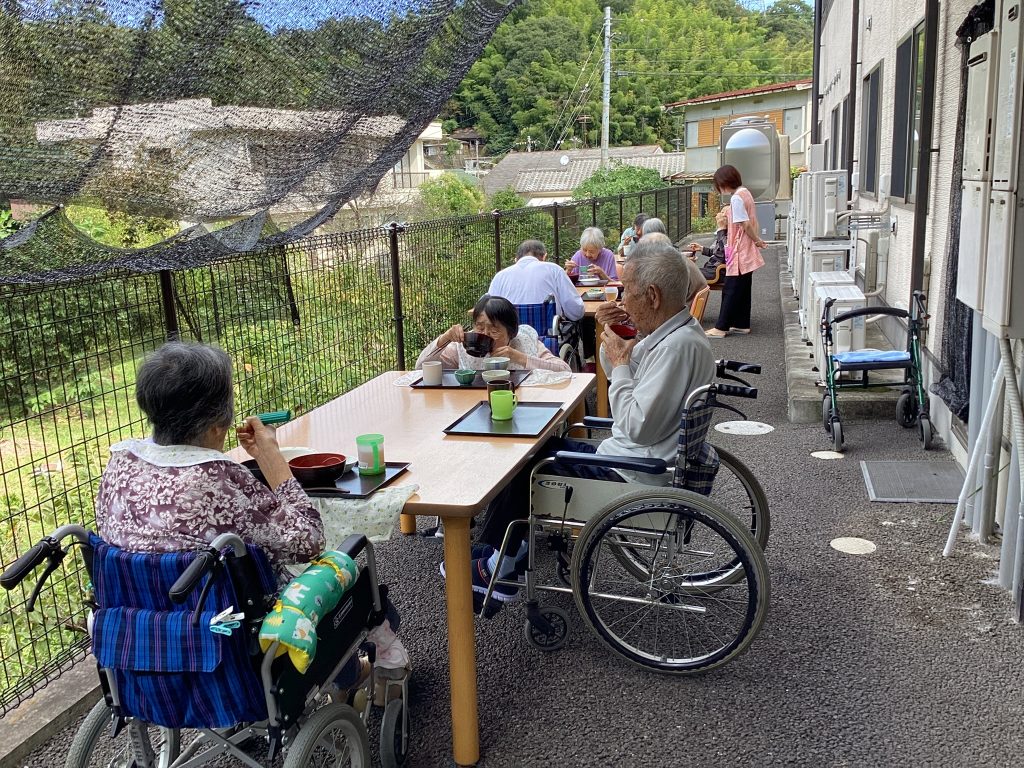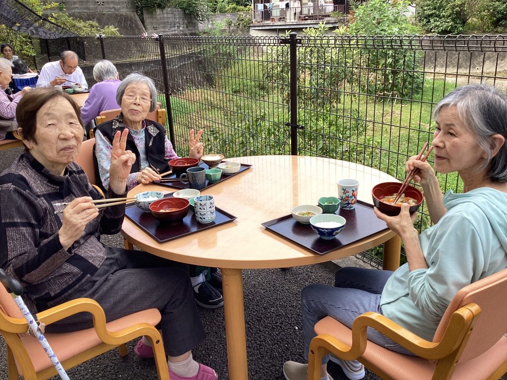 この日は天候に恵まれ、裏庭に食卓を移しての「青空食堂」です🌞