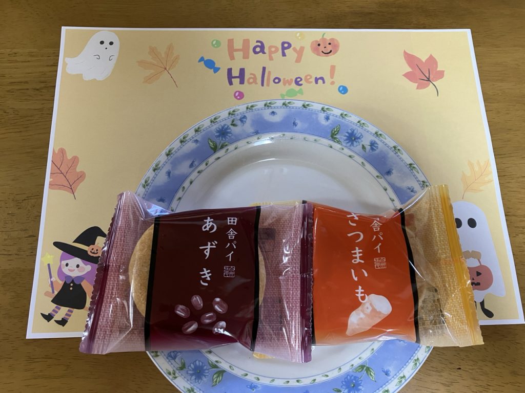 焼き菓子「田舎パイ」の“あずき味”と“さつまいも味”からお好きな方を選んでいただき💞大変ご満悦のご様子でした😃
