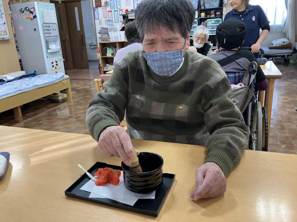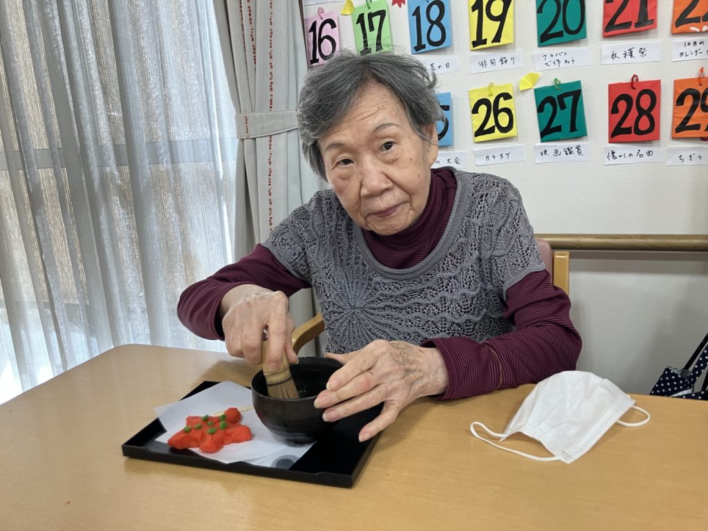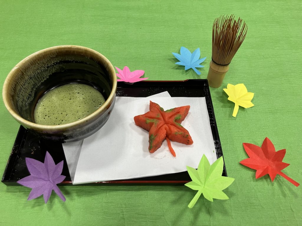 紅葉🍁をモチーフとした和菓子を白餡でそれぞれお作りいただき、温かいお抹茶とともに召し上がっていただきました✨