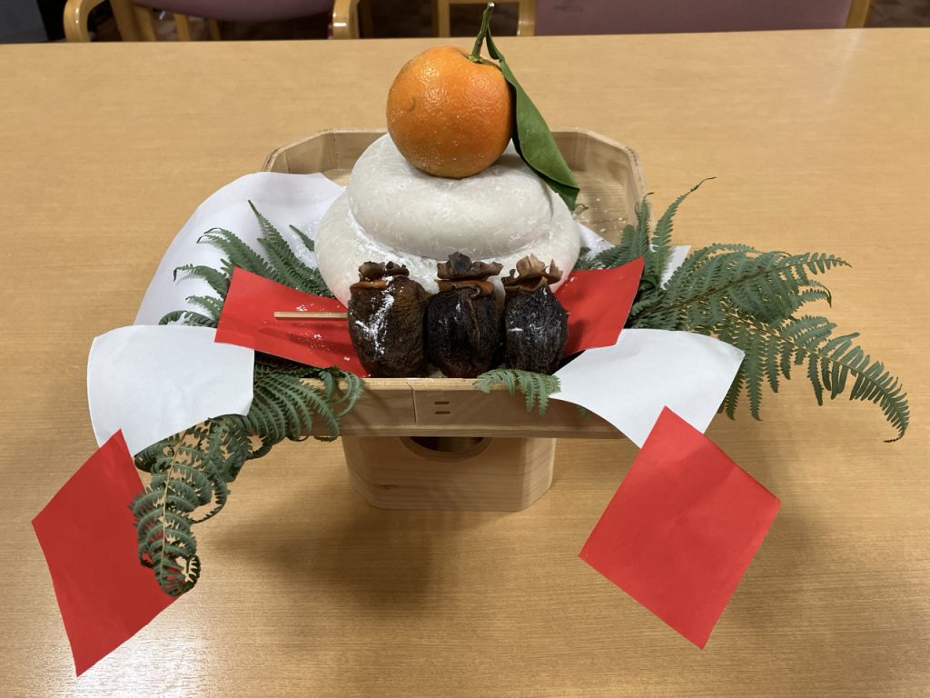 今年のこだわりは、当施設で手作りした「干し柿」を飾りに添えた点です。