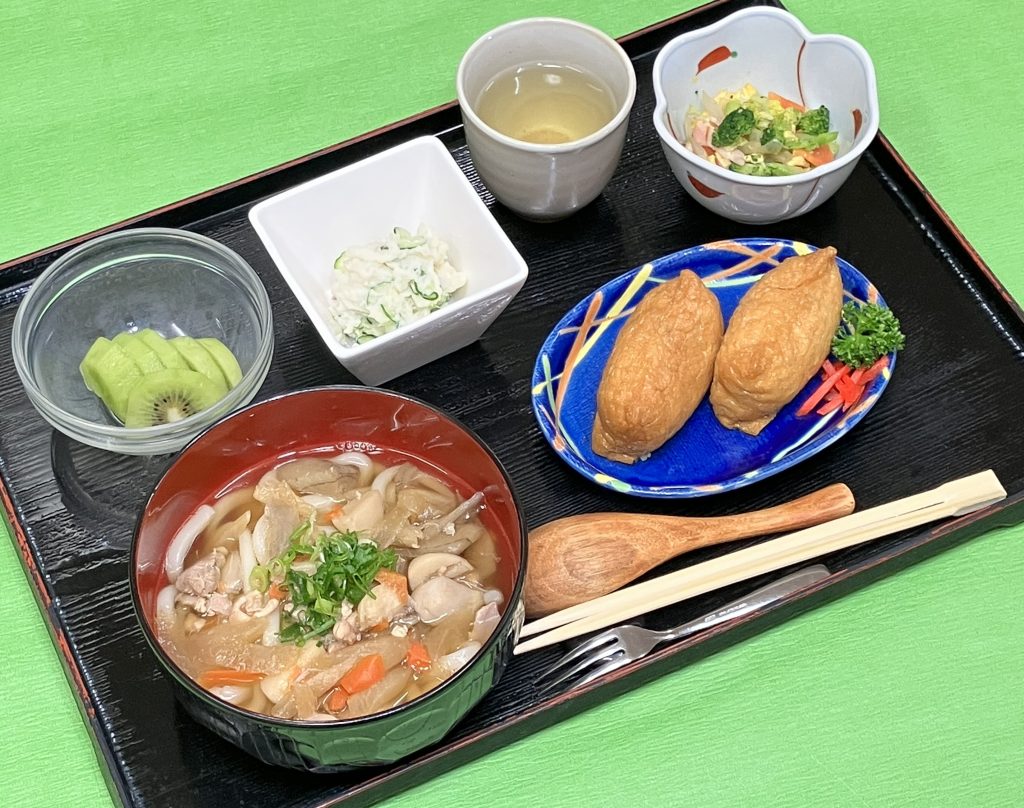 本日の昼食は、特別メニューで『煮込み風うどん&いなりご膳』でした。