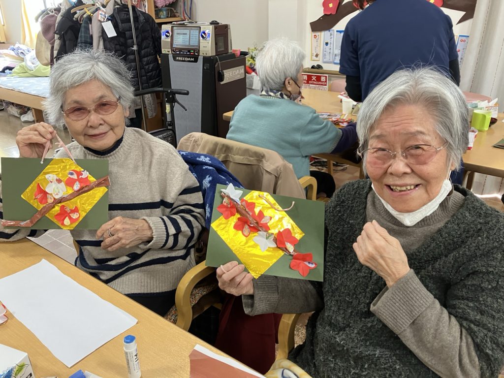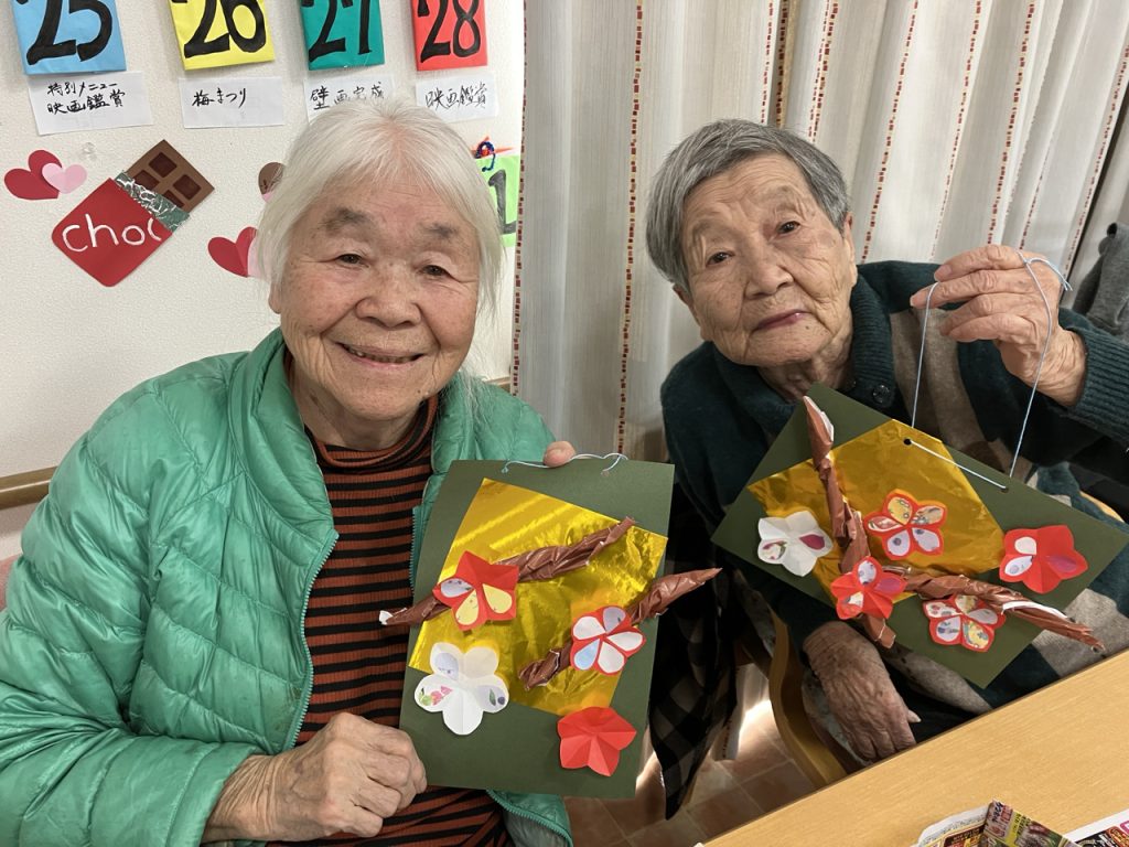 本日は、早春の訪れを感じさせる「🌸梅飾り」作りを行いました😲