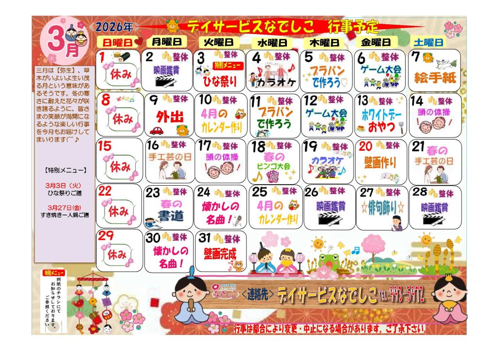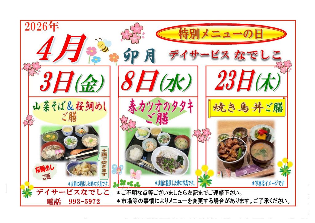 2026年(令和8年)4月の行事予定&特別メニュー〔デイサービスなでしこ〕