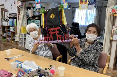 また、カラオケ・手工芸・ゲームなどのレクリエーションや、外食・買い物などの外出行事も実施し、生きがいや楽しみを持てる生活を支援しています。事業所内の厨房で手作りする昼食や行事食も好評です。